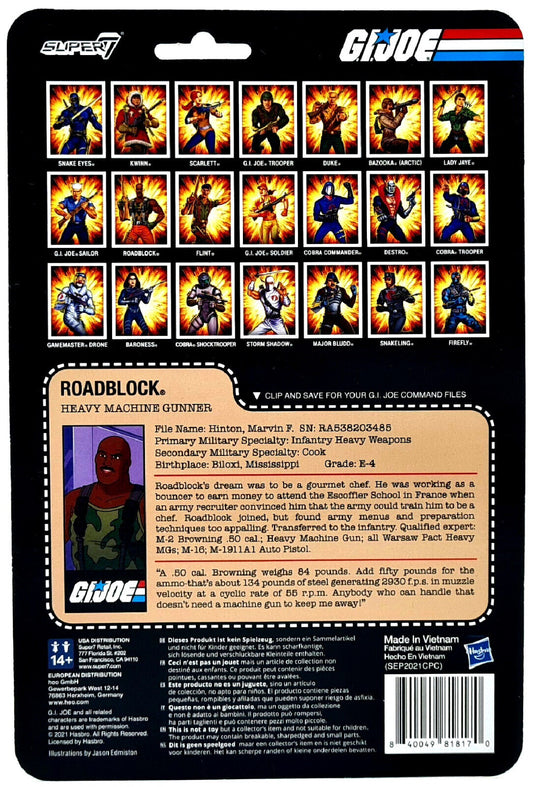 ROADBLOCK HEAVY MACHINE GUNNER G.I. JOE SUPER7 FIGURE 10cm 2021 OVP REACTION GI